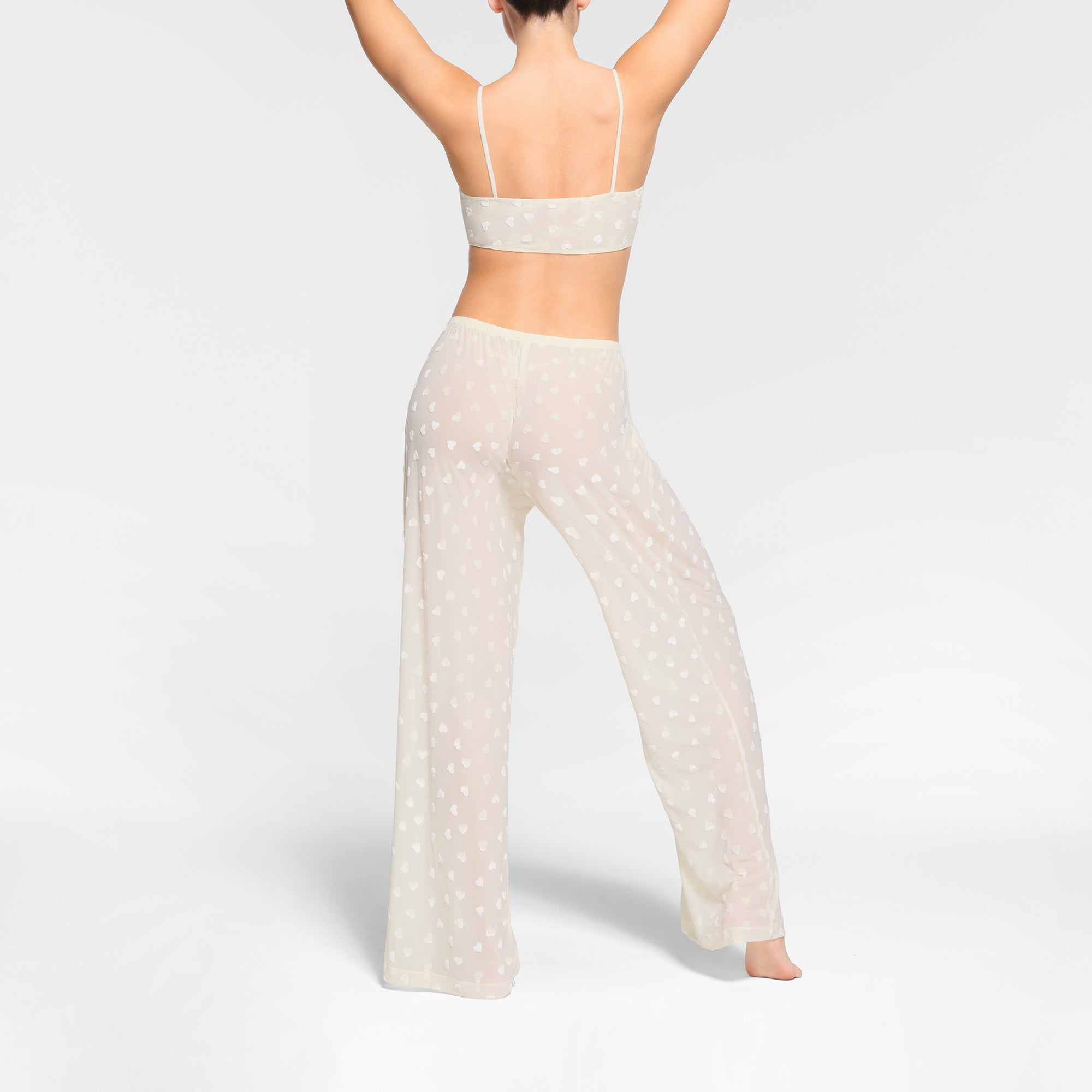 A bralette as sexy as it is comfortable. Made with a soft, sheer fabric, this sleep top has an all-over velvet heart print you’ll be sweet on. Features a feminine scoop neck that ties in the front and adjustable straps that stretch for the perfect fit. Fits true to size.