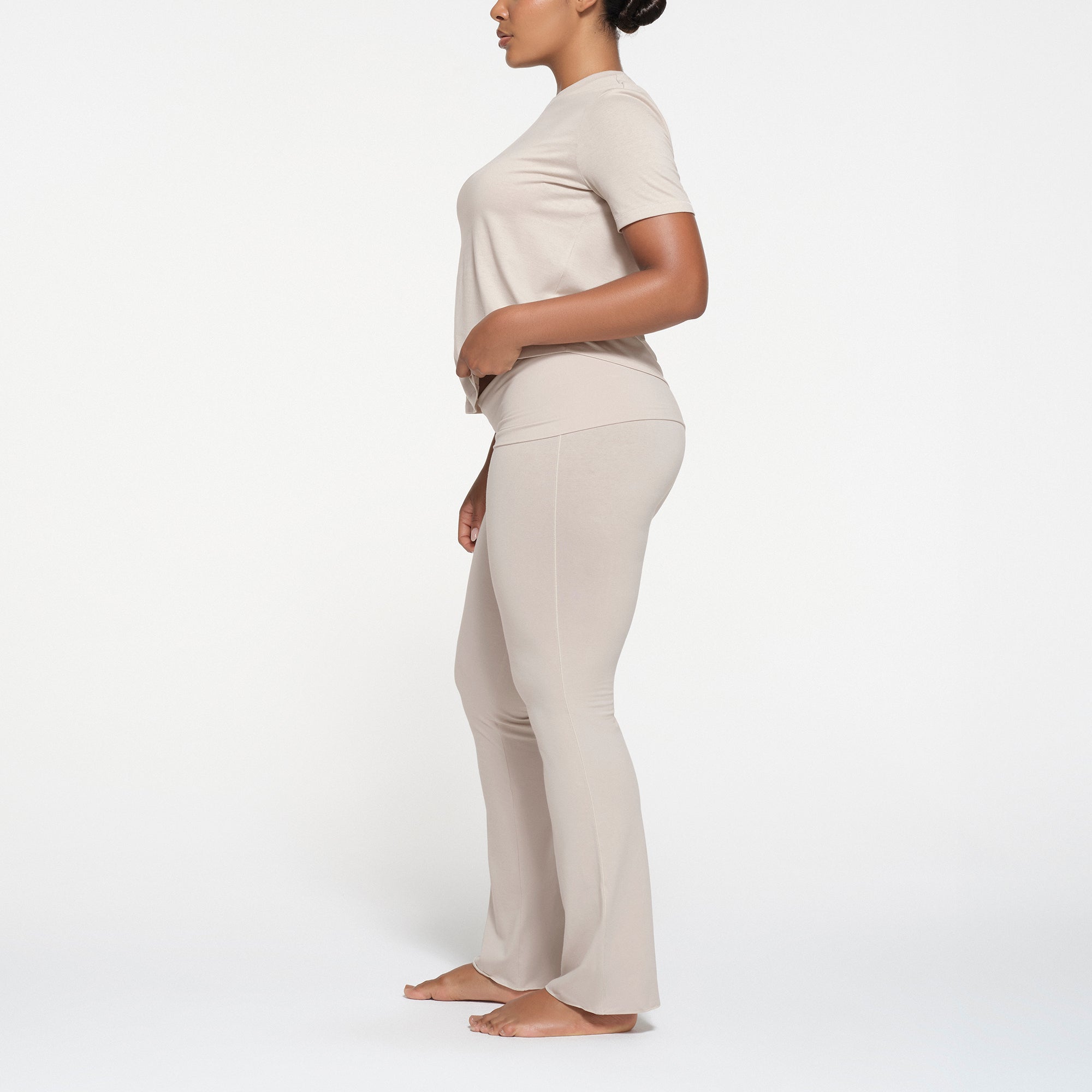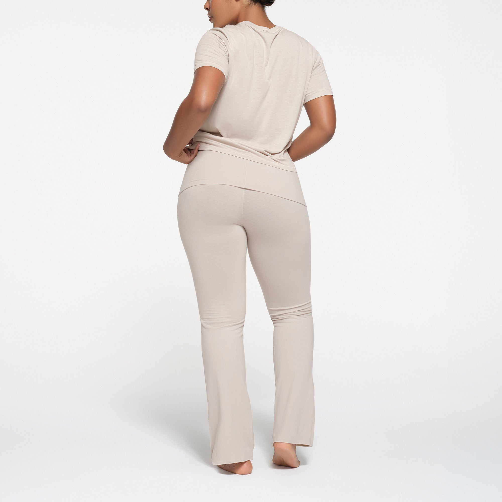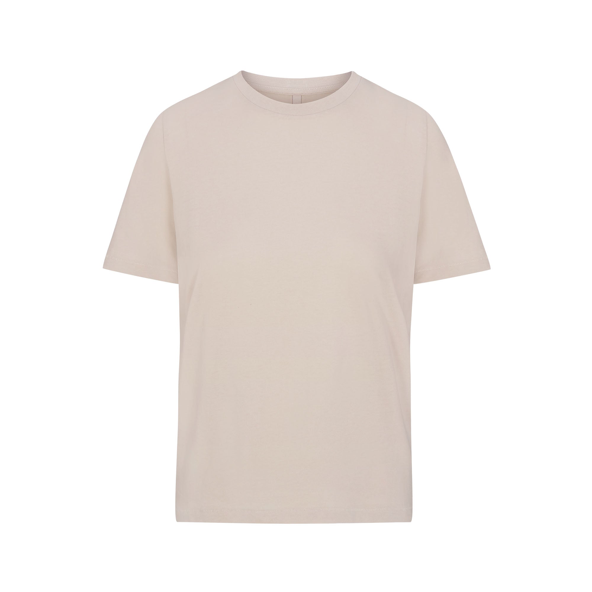 Your go-to tee. Made with a soft, breathable cotton blend in a comfortable, classic fit. Features ribbed detailing at the crew neck and a SKIMS logo label at the center back of the collar. Hits below the natural waist. Fits true to size.