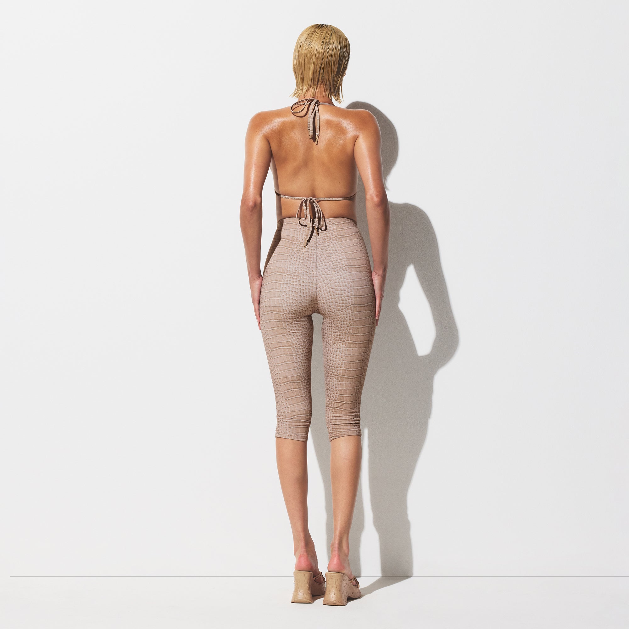 The chicest swim capri. This style features a hidden interior elastic waistband and SKIMS logo detail on the bottom leg. Fits true to size.
