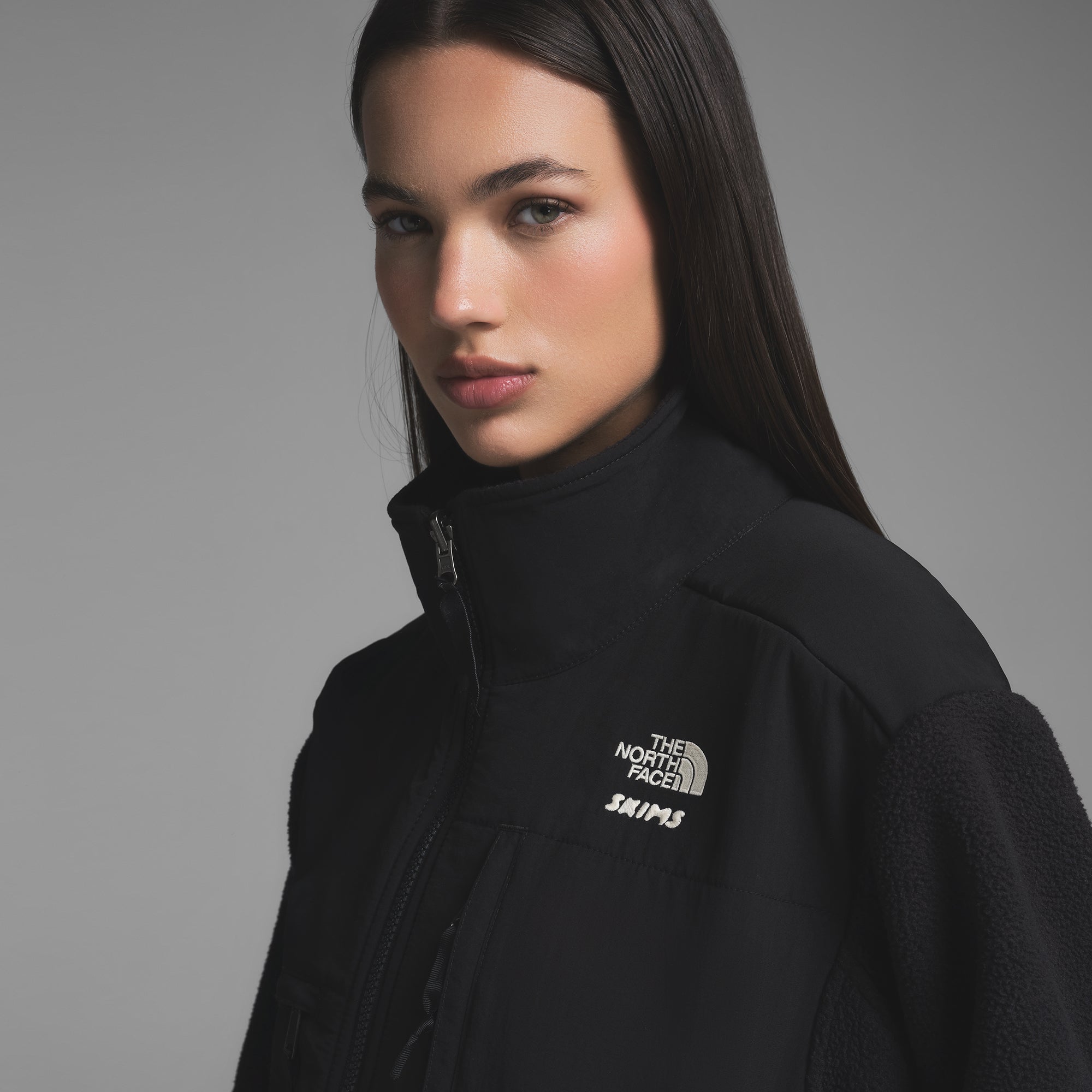 The North Face’s original Denali fleece is redefined with SKIMS signature aesthetic in this winter staple. Made with heavyweight, plush fleece for endless comfort and style on casual outings and cold weather adventures. Woven overlays on the collar, chest, back yoke and lower sleeves add an extra layer of durability. Designed in SKIMS classic colorways as part of the limited edition The North Face x SKIMS Collection. We suggest sizing down for a less oversized look. Shell Body: 100D, 360 G/M2, 100% Recycled Polyester. Shell Overlay: 70D, 118 G/M2 100% Recycled Nylon With Non-PFC Durable Water-Repellent (Non-PFC DWR) Finish. Pocket Lining: 149 G/M2 100% Recycled Polyester.